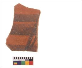 | Description / विवरण | Specimen of potsherd with decorative geometric painting, Type Black on Red ware . |