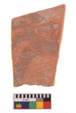 | Description / विवरण | Specimen of potsherd with decorative geometric painting. Type Black on Red Ware . |
