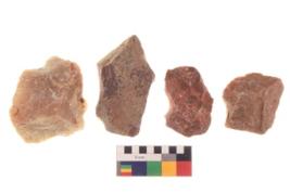 | Description / विवरण | There are n 4 utilized worked flakes; they show multidirectional irregular scar pattern on both dorsal and ventral face of the flakes. All are having sharp edges. One is tapering with a point. |