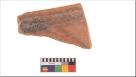 | Description / विवरण | Specimen of potsherd with decorative geometric painting, Type Black on Red ware . |