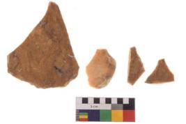 | Description / विवरण | There are n 4 utilized worked flakes; they show multidirectional irregular scar pattern on both dorsal and ventral face of the flakes. Three of them are having sharp edges. Almost all are tapering at one end. |
