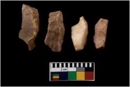 | Description / विवरण | There are n 4 of utilized worked cores. They show multidirectional irregular scar pattern. Three are tapering on one end. Two have broken tip. |