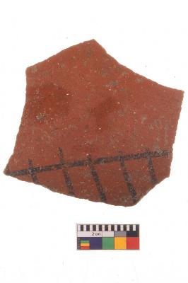 | Description / विवरण | Specimen of potsherd with black decorative painting, Type Black on Red Ware . |