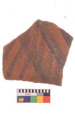 | Description / विवरण | Specimen of potsherd with black decorative geometric painting, Type Black on Red Ware . |