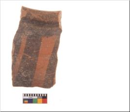| Description / विवरण | Specimen of potsherd with decorative geometric painting, Type Black on Red ware . |