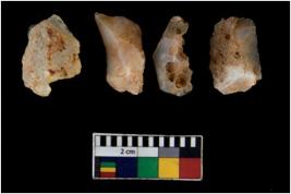 | Description / विवरण | There are n 4 of utilized worked cores. They show multidirectional irregular scar pattern. Two are tapering on one end and are elongated in shape. |