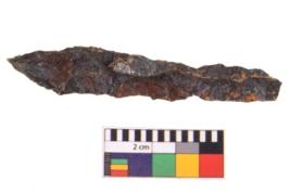 | Description / विवरण | Fragment of iron; it is irregular in shape, tapering at one end and highly corroded. |