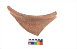 | Description / विवरण | Specimen of potsherd with traces of decorative geometric painting, Type Black on Red ware . |