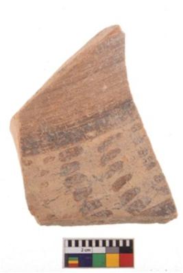 | Description / विवरण | Specimen of potsherd with decorative geometric painting. Type Black on Red Ware . |