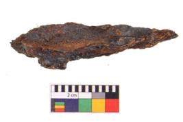 | Description / विवरण | Fragment of iron; it is irregular in shape tapering at one end and highly corroded. |