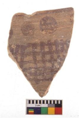 | Description / विवरण | Specimen of potsherd with decorative geometric painting. Type Black on Red Ware . |