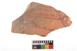| Description / विवरण | Specimen of potsherd with decorative geometric painting. Type Black on Red Ware . |