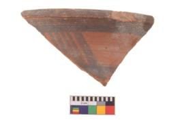 | Description / विवरण | Specimen of potsherd black on red painted pottery. It is fine fabric in sharp contrast with painted design are executed in black pigment. |