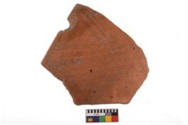 | Description / विवरण | Specimen of potsherd with decorative geometric painting. Type Black on Red Ware . |