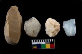 | Description / विवरण | There are n 4 cores; two of quartz one of chalcedony and one of chert. The chert core show prominent ridges and sharp edges, whereas rest are blunt. |