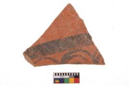 | Description / विवरण | Specimen of potsherd with decorative geometric painting. Type Black on Red Ware . |