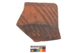 | Description / विवरण | Specimen of potsherd with black decorative painting, Type Black on Red Ware . |