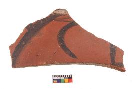 | Description / विवरण | Specimen of potsherd with black decorative painting, Type Black on Red Ware . |