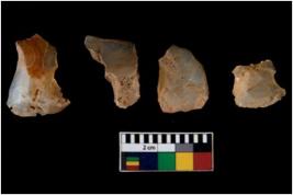 | Description / विवरण | There are n 4 of utilized worked cores. They show multidirectional irregular scar pattern. Two are tapering on one end. |