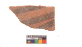 | Description / विवरण | Specimen of potsherd with decorative geometric painting, Type Black on Red ware . |