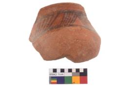 | Description / विवरण | Specimen of potsherd black on red painted pottery. It is fine fabric in sharp contrast with painted design are executed in black pigment. |