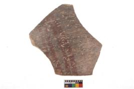 | Description / विवरण | Specimen of potsherd with decorative geometric painting. Type Black on Red Ware . |