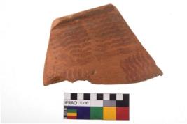 | Description / विवरण | Specimen of potsherd with decorative geometric painting. Type Black on Red Ware . |