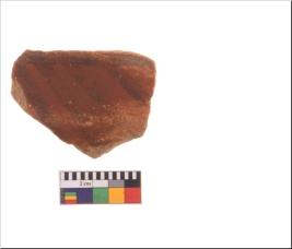 | Description / विवरण | Specimen of potsherd with traces of decorative geometric painting, Type Black on Red ware . |