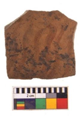 | Description / विवरण | Specimen of potsherd with decorative geometric painting. Type Black on Red Ware . |