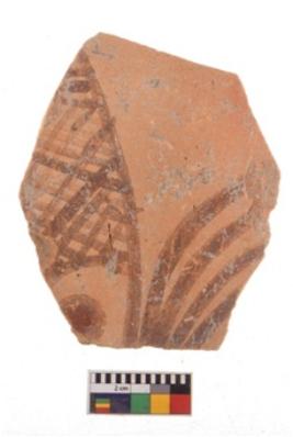 | Description / विवरण | Specimen of potsherd with decorative geometric painting. Type Black on Red Ware . |