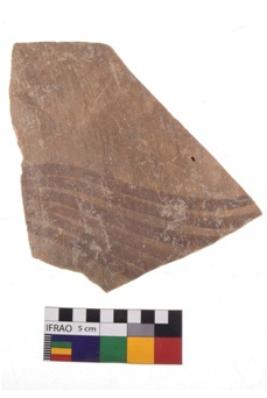 | Description / विवरण | Specimen of potsherd with decorative geometric painting. Type Black on Red Ware . |