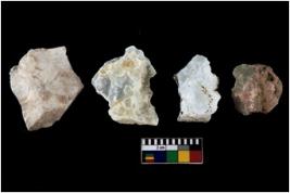 | Description / विवरण | There are n 4 of utilized worked cores. There are multidirectional irregular dominant scar pattern on both dorsal and ventral side. Some have flat base. |