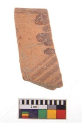 | Description / विवरण | Specimen of potsherd with decorative geometric painting. Type Black on Red Ware . |