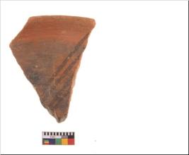 | Description / विवरण | Specimen of potsherd with decorative geometric painting, Type Black on Red ware . |