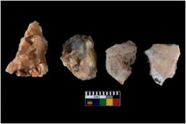 | Description / विवरण | There are n 4 of utilized worked cores. They show multidirectional irregular dominant scar pattern. They have sharp edges and some are tapering at one end. |