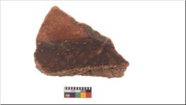 | Description / विवरण | Specimen of potsherd with decorative geometric painting, Type Black on Red ware . |