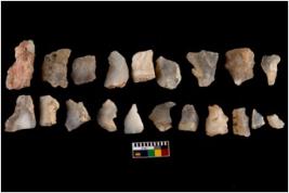 | Description / विवरण | There are n 20 worked flakes; all are having sharp edges. Sone are tapering at one end whereas some have flat base.All are uneven in shape and size. None of them show crested ridge flakes. |