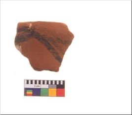 | Description / विवरण | Specimen of potsherd with decorative geometric painting, Type Black on Red ware . |