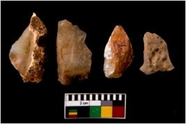 | Description / विवरण | There are n 4 of utilized worked cores. They show multidirectional irregular scar pattern and are tapering on one end. |