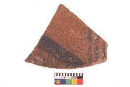 | Description / विवरण | Specimen of potsherd with black decorative geometric Linear painting, Type Black on Red Ware . |