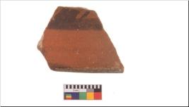 | Description / विवरण | Specimen of potsherd with decorative geometric painting, Type Black on Red ware . |