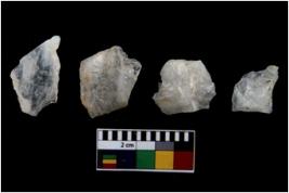 | Description / विवरण | There are n 4 flake cores. All of them are fully fluted flake cores without any trace of crested ridge flakes. Few are tapering at one end and some of them have blunted edges. |