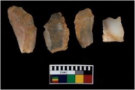 | Description / विवरण | There are n 4 of utilized worked cores. They show multidirectional irregular scar pattern. Two are tapering on one end. |