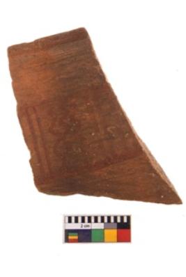 | Description / विवरण | Specimen of potsherd with decorative geometric painting. Type Black on Red Ware . |