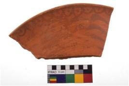 | Description / विवरण | Specimen of potsherd with decorative geometric painting. Type Black on Red Ware . |