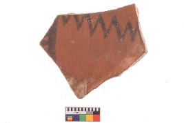 | Description / विवरण | Specimen of potsherd with black decorative painting, Type Black on Red Ware . |