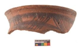 | Description / विवरण | Specimen of potsherd with black decorative geometric painting. |