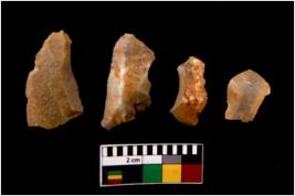 | Description / विवरण | There are n 4 of utilized worked cores. They show multidirectional irregular scar pattern. Three are tapering on one end and have sharp edges. |