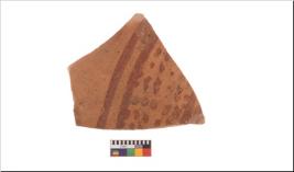 | Description / विवरण | Specimen of potsherd with decorative geometric painting, Type Black on Red ware . |