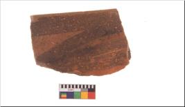 | Description / विवरण | Specimen of potsherd with decorative geometric painting, Type Black on Red ware . |
